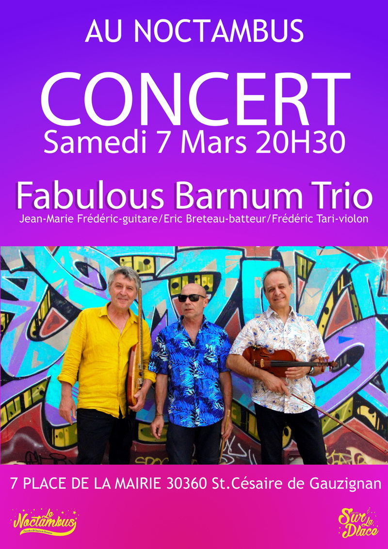 | Entre ces trois musiciens chevronnés longtemps partis aux quatre coins du monde, il y a d'abord une longue et profonde amitié, empreinte de curiosité et du bonheur enfantin de jouer ensemble, comme une joie communicative. Fort d'une utilisation sans égal des instruments, le son inimitable du Fabulous Barnum Trio nait de cette alchimie. Mélodie, matière sonore et improvisation y dialoguent constamment, transformant la musique en une matière vivante indomptable. Tout peut émerger à chaque instant, chacun de leurs concerts est une aventure unique. Comme au cinéma, les musiciens ouvrent en grand l'écran de l'imaginaire. Avec eux, on sillonne des contrées lointaines, tantôt irradiées de lumière, traversées par les vents, ou balayées par la pluie. Des univers poétiques emplis d'un souffle épique et tendre où le sacré le dispute au burlesque et la puissance à la délicatesse. Aux compositions des trois artistes s'ajoutent les rythmes et les grandes mélodies du Jazz, de la chanson française, de la Pop et des musiques du monde. Pour eux, un seul désir : jouer ! |